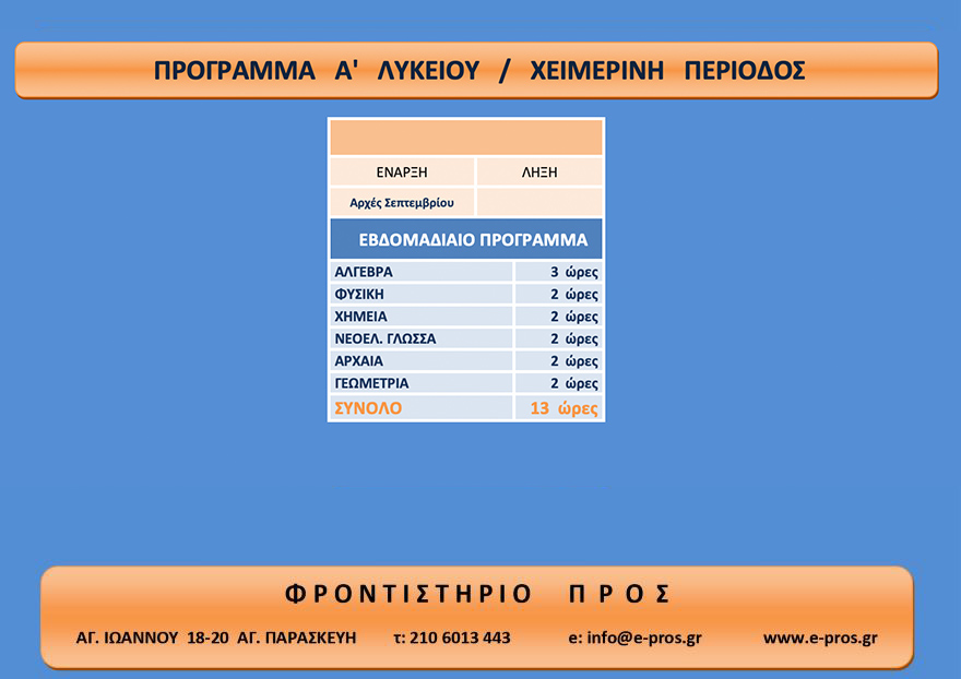 Πρόγραμμα σπουδών » Α’ ΛΥΚΕΙΟΥ