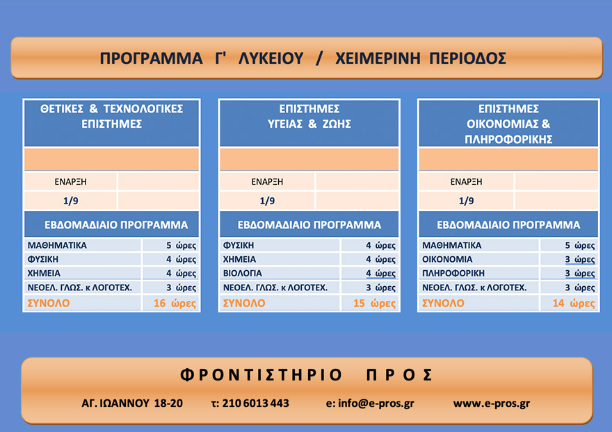 Πρόγραμμα σπουδών » Γ’ ΛΥΚΕΙΟΥ